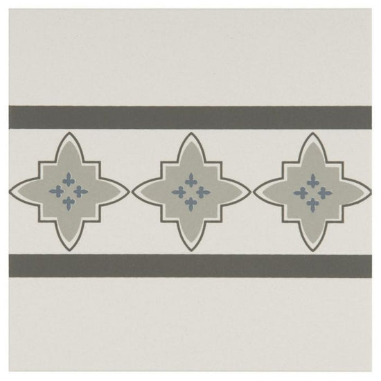 Marrakech Border Light Blue, Light Grey and Dark Grey on Dover White