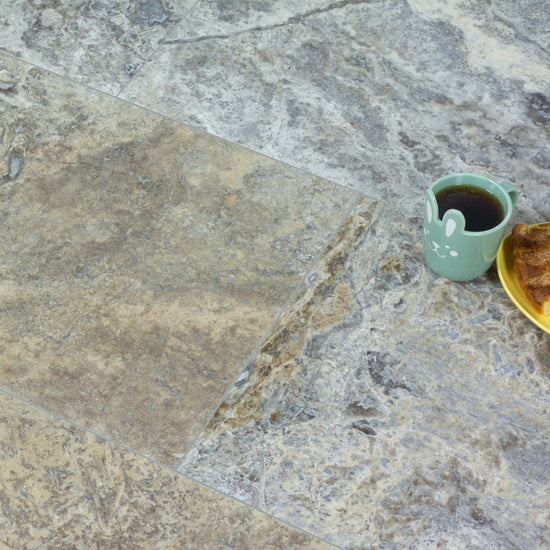 This fascinating & very rare silver travertine has a subtle grey - brown background set beneath delicate waves & swirls, creating extraordinary patterns not seen in any other natural stone.