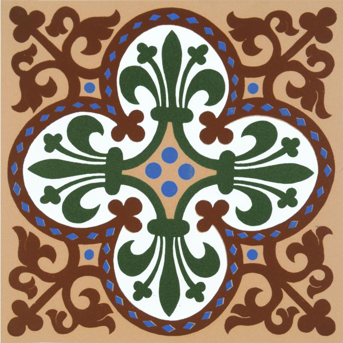 Featuring a classic fleur de lis design, Original Style's Wellesley tiles are hand-crafted in three beautiful colourways designed to complement Original Style's plain geometric tiles. These smaller decoratives are the perfect way to add contrast and variety within one of Original Style's geometric patterns. Victorian geometric floor tiles have been used in interiors for decades and are still just as popular today, especially for those renovating period properties. Original Style's collection began in 1990 and since then we have developed an extensive collection of shapes, colours and hand-crafted decorated tiles that are created in Original Style's factory in Devon, England.