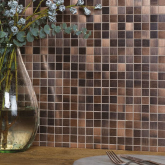 Mosaics containing or made from copper are not suitable for kitchens, bathrooms, showers and wet rooms or exposure to excessive moisture. When exposed to air and moisture the copper may, over time, form a patina of Verdigris (a green coating).