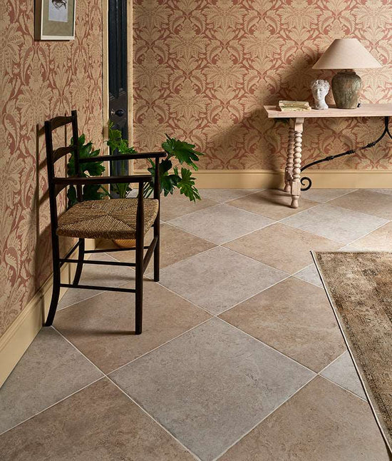 With warm beige tones reminiscent of Cotswold flagstones and delicate veining, this artfully aged-looking porcelain will create warmth and homeliness; perfect for hard-working homes.