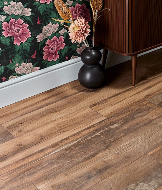 This beautifully varied wood effect porcelain tile has all the markings and colours of a real oak floor; with colour options mimicking traditional wood finishes.