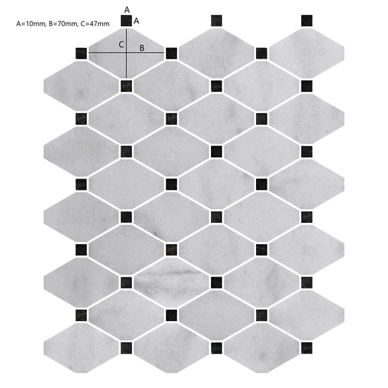 Diamonds are forever! Want your bathroom to ooze glamour? Then the diamond marble mosaic is the perfect tile for you. Beautifully paired with our St Laurent marble, the mosaic is bound to turn heads. Why not match these mosaics with one of our many other Carrara formats to create a seamless show stopping space.