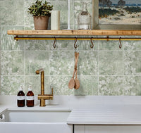 Clarissa designed this truly stunning collection of tiles to bring the wild beauty of nature into kitchens, bathrooms and even steam rooms. With a random mix of nine designs available in three colourways, Wild Botanicals features the silhouettes of different British wild flowers or meadow grasses against a soft watercolour wash in midnight Blue, smoky Green or blush Pink.
