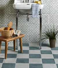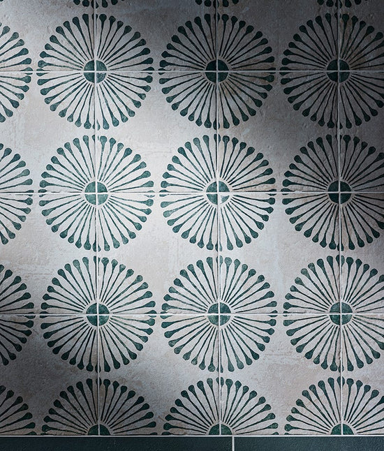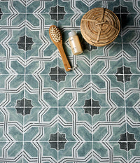These artisanal, handmade-looking tiles have unique geometric patterns with a Caribbean style. Thanks to the matt, textured finish, Cuba can also be used outdoors in domestic settings.