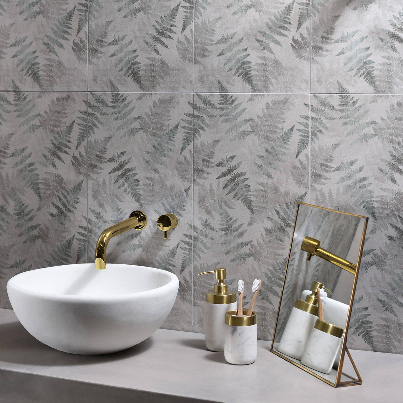 "The lush and leafy designs of Eden bring a tropical paradise to your bathroom: Glade is a delicate bouquet of ferns, Pergola has trailing fronds, and Hothouse is a riot of palm leaves. The Living collection offers a highly decorative but liveable range of patterns designed for modern life. Created and designed by us, these patterned tiles also come with coordinating plain colour options. Use in kitchens, bathrooms, showers, cloakrooms, hallways, dining areas or wherever you please. Living. It starts here… "