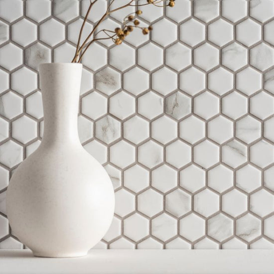 The hexagon – invented by nature and also looking very much at home on walls. Get on-trend with this honeycomb shaped mosaic. Mosaics are versatile and have always been in style. They are a brilliant way to add an individual touch to your home in so many different ways: as a splashback, a shower wall, a decorative wall feature, an accent within a neutral scheme, to provide a contrast of colour or texture.