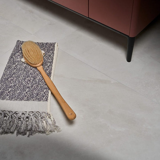 These salt crystal effect porcelain tiles have a matt texture and come in a soft and dreamy colour palette.