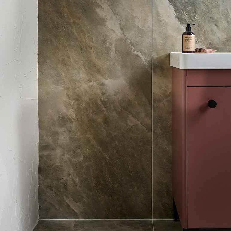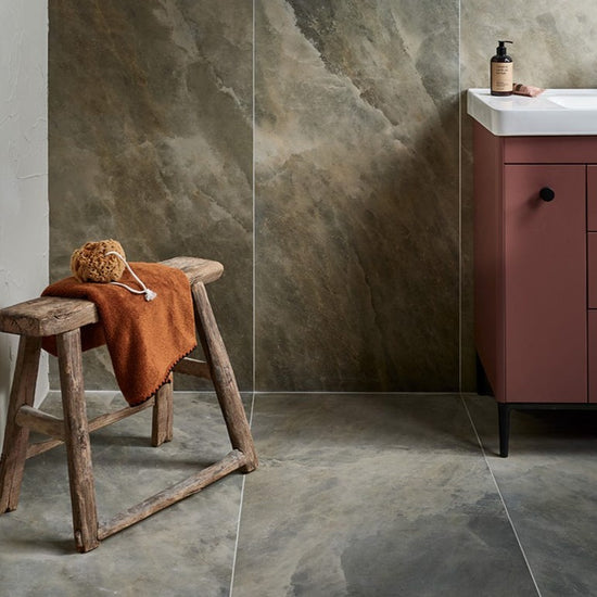 These salt crystal effect porcelain tiles have a matt texture and come in a soft and dreamy colour palette.