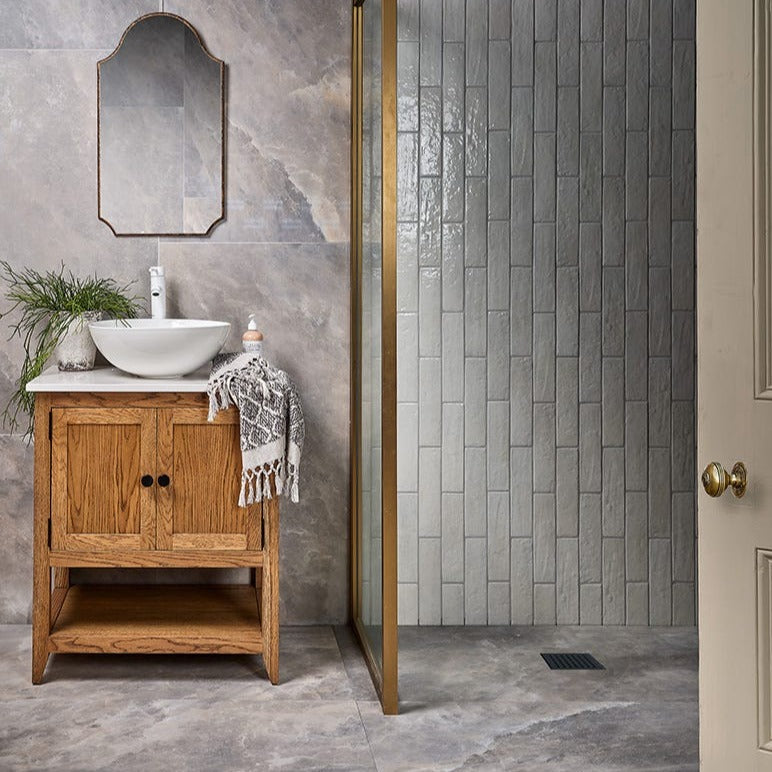 According to EU standards, a tile can bow up to 0.5% of its length. For example, on a 600mm tile, the centre could be up to 3mm higher than the corners. When tiles are laid in a brickbond format with joints aligned at the centre of the tile below, this bowing can create noticeable lipping—where one edge sits higher than the adjacent tile.