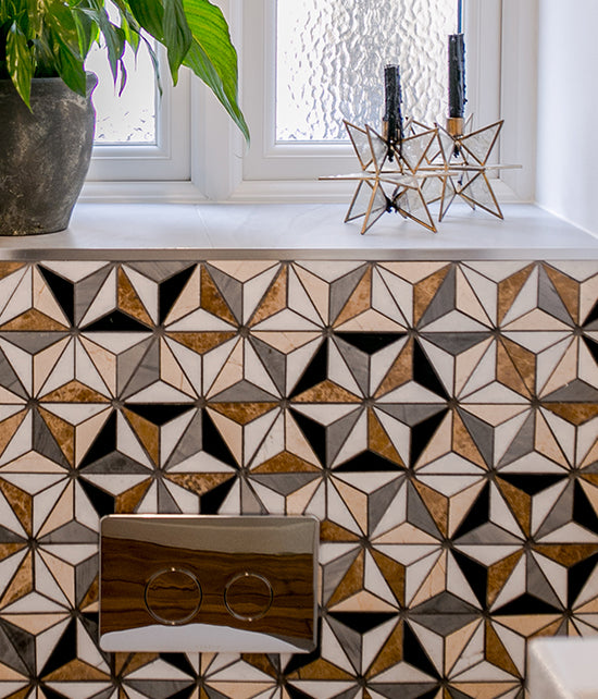 These refined, decorative mosaic patterns are great value for a really high-quality marble. There are natural variations of tone and colour inherent in the marble that come assembled on a mesh sheet.