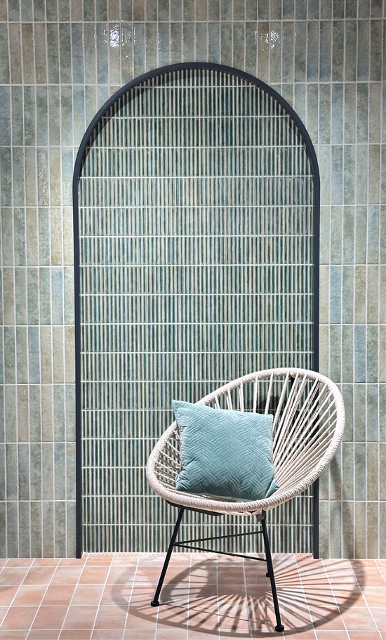 For those seeking a unique mosaic effect without the complexity or cost of traditional mosaics, Kalai offers the innovative “Sticks” option. This pre-scored design creates the appearance of individual mosaic tiles, offering intricate detailing at a fraction of the cost. The “Sticks” option maintains the same rich glazing and undulating surface as the rest of the Kalai collection, providing a seamless design solution within the same colour palette. This feature is perfect for adding texture to walls while keeping the design cohesive and affordable.