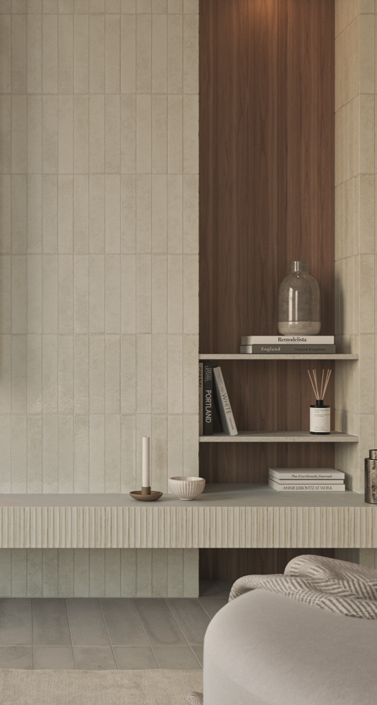 With its 250x50mm format, Kalai offers a sleek, elongated take on the classic metro tile. The thin rectangular shape allows for various design possibilities, including herringbone, vertical, and horizontal patterns. Whether you are redesigning a kitchen splashback or transforming a bathroom, the versatile size makes these tiles ideal for creating dynamic layouts. Kalai tiles bring a refined yet rustic aesthetic, making them a perfect choice for homeowners and designers alike.