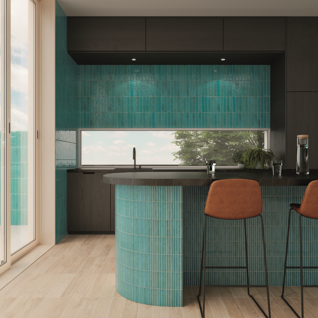 If you are looking for a statement piece in your home, Kalai’s vibrant colours and unique surface texture make it an ideal feature tile. The collection offers a range of eye-catching shades, such as Cotton White, Agave Green, Azure Blue, and Forest Green, each designed to make an impact in any room. Whether used in the kitchen, living area, or as a bold bathroom accent, these tiles provide endless design possibilities. The distinctive texture and colour of Kalai tiles create a standout feature that elevates the overall look and feel of your space.