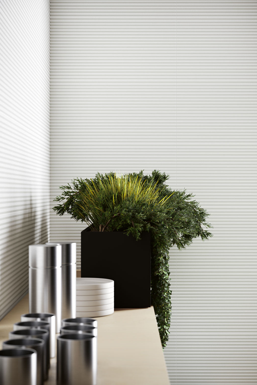 Linea is lineal representation of texture in pastel shades. Perfect for wall applications in a variety of settings; bathrooms, kitchens or even commercial restaurant settings