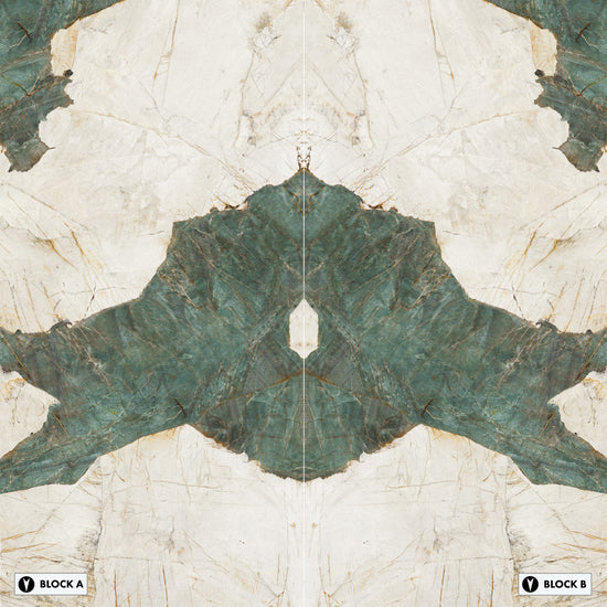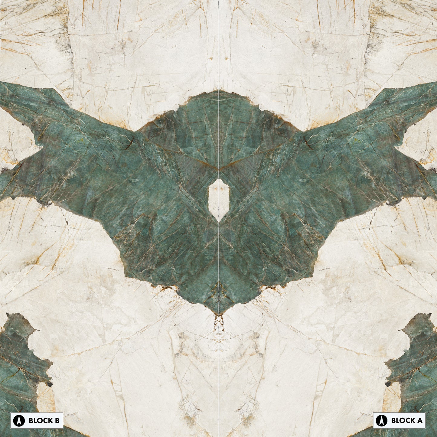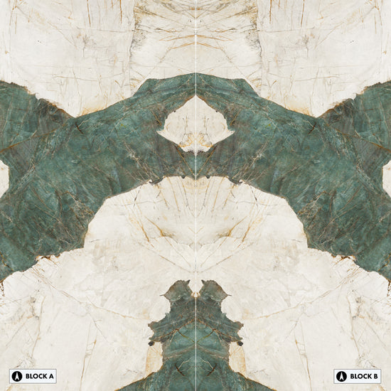 • Bookmatched design with mirrored aqua veining for dramatic visual symmetry