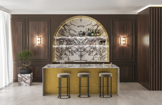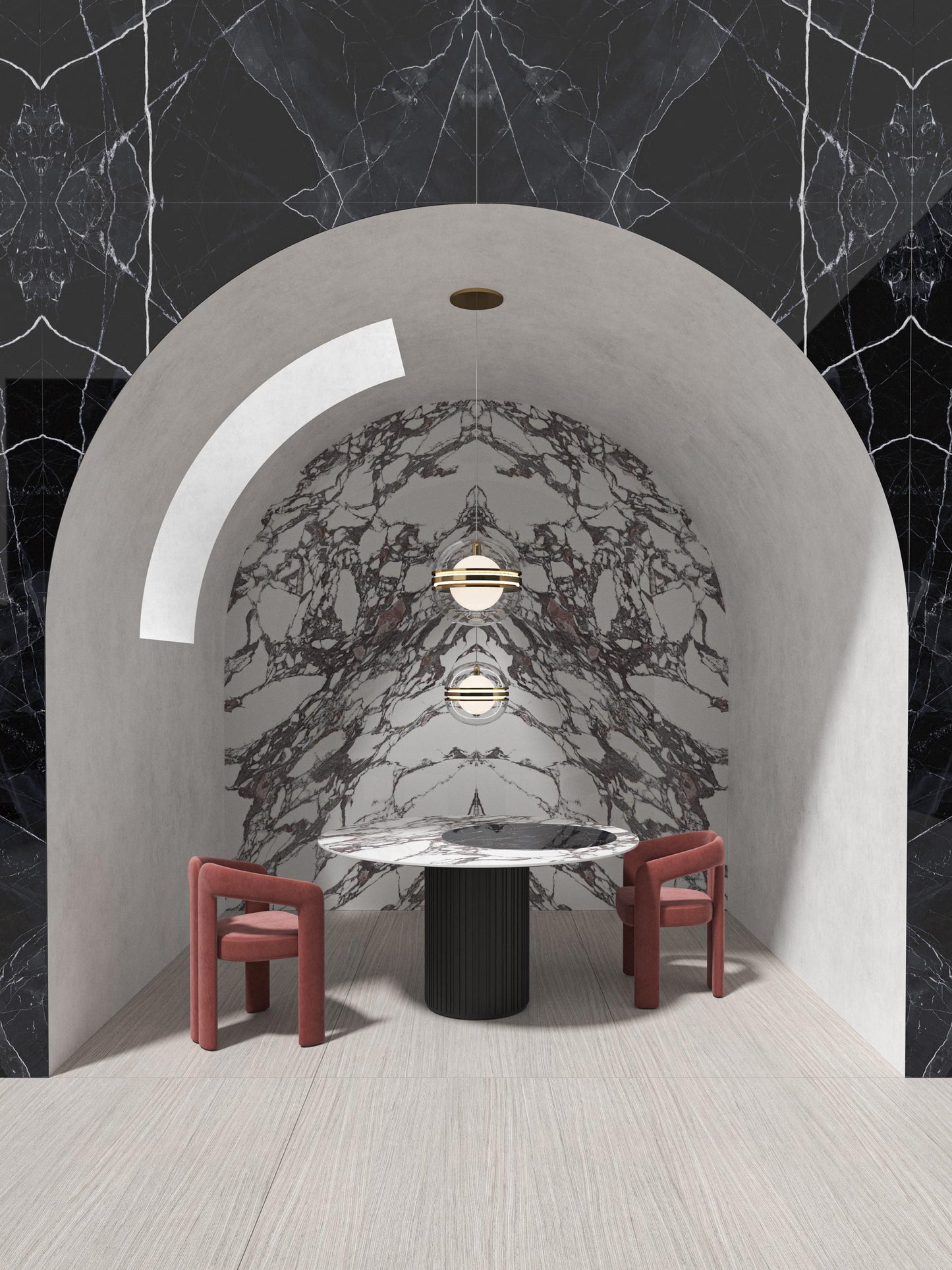 The Full Lappato finish provides a refined, semi-gloss polish that accentuates the veining while softly reflecting ambient light. This large-format porcelain slab blends the opulence of Calacatta Viola marble with the ease and resilience of porcelain — perfect for sophisticated hospitality, retail, and residential interiors.