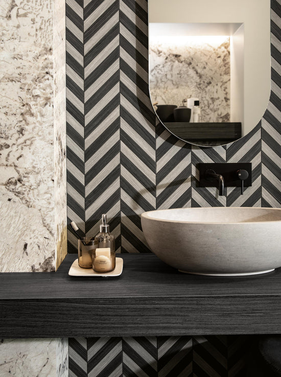 According to EU standards, a tile can bow up to 0.5% of its length. For example, on a 600mm tile, the centre could be up to 3mm higher than the corners. When tiles are laid in a brickbond format with joints aligned at the centre of the tile below, this bowing can create noticeable lipping—where one edge sits higher than the adjacent tile.