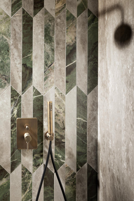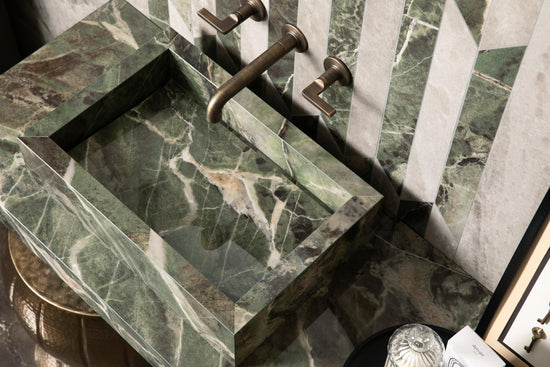 Marmi Heritage Emerald (Glossy) captures the raw, dramatic elegance of nature with its vivid emerald hues, layered textures, and high-contrast veining. The glossy finish heightens the colour vibrancy and stone detailing, delivering a powerful visual statement.