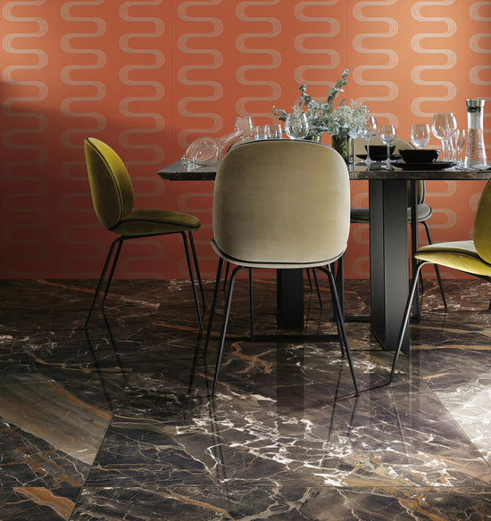Marmi Ombre de caravage (Glossy) This large format porcelain slab features a high-gloss surface that enhances the slab's colour depth and reflection.