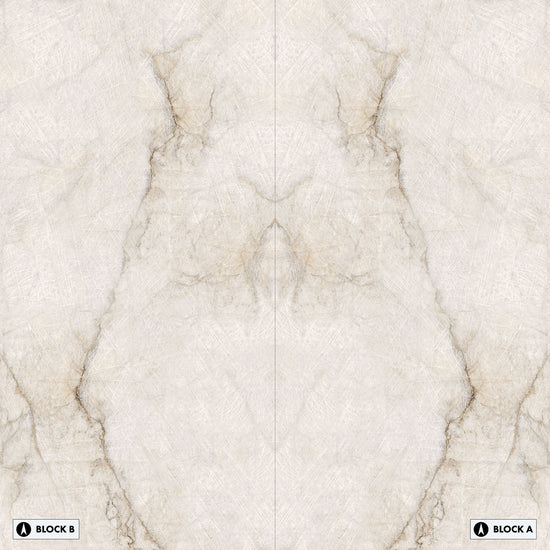 Marmi Quarzo Bookmatched (Full Lappato) This large format porcelain slab features a semi-polished Full Lappato surface that delivers refined shine with subtle reflectivity. Its bookmatched layout creates a mirrored, symmetrical design -ideal for impactful feature walls.