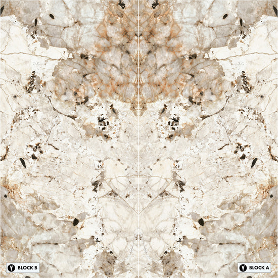 Marmi Tundra Bookmatched (Glossy) This large format porcelain slab features a high-gloss surface that enhances the slab's colour depth and reflection. Its bookmatched layout creates a mirrored, symmetrical design -ideal for impactful feature walls.