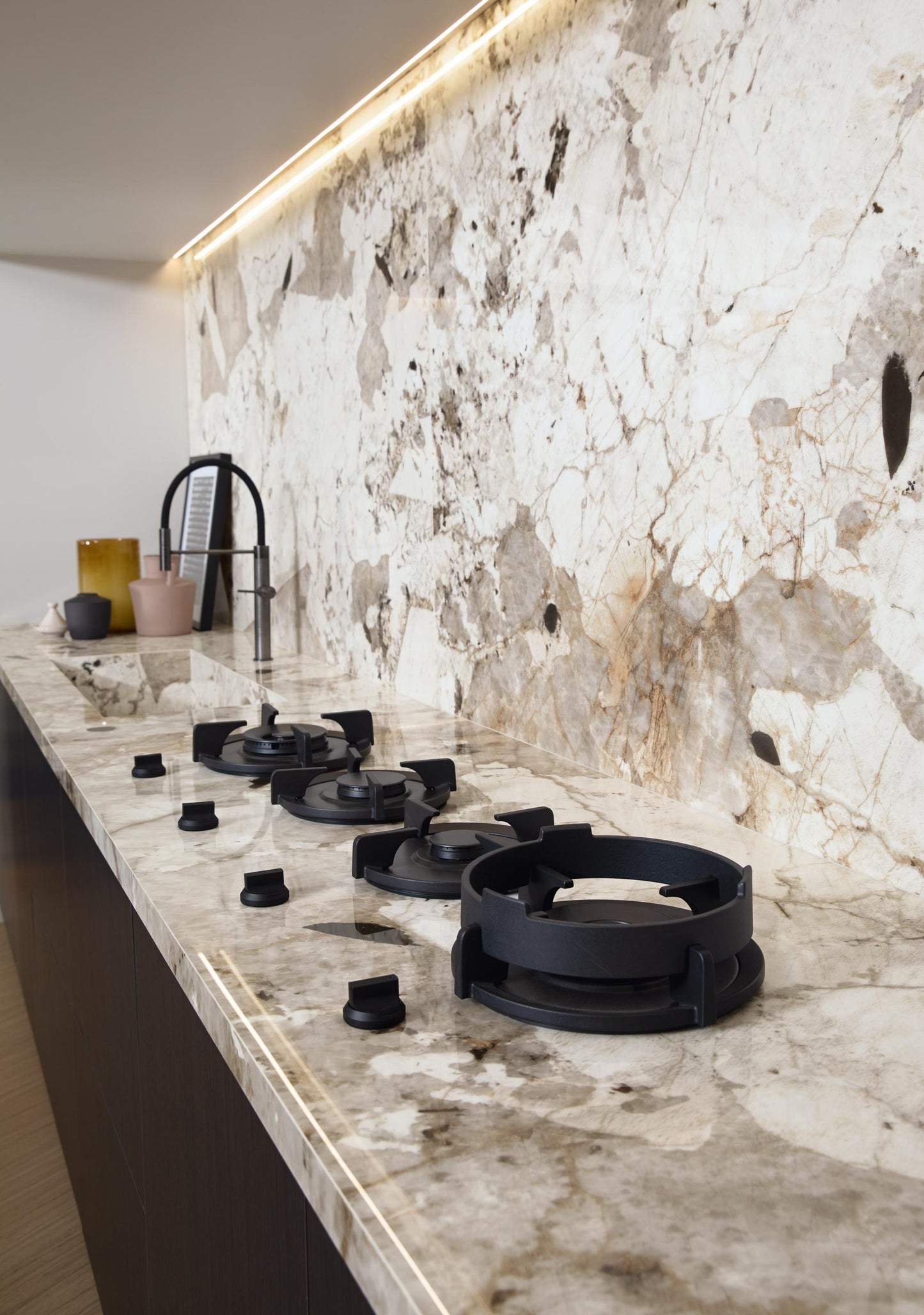 Marmi Tundra (Comfort) This large format porcelain slab has a comfort finish -soft-touch and slip-resistant -suitable for wellness or barefoot areas.