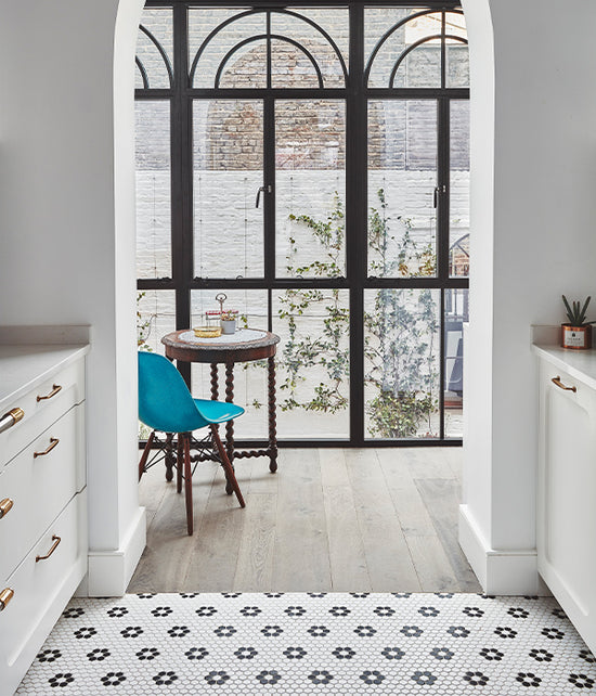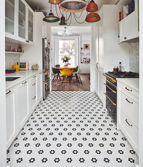 Keeping it compact, these Mono Hex tiles are small and sweet with a mosaic design that can add a luxe look to kitchens and bathrooms.