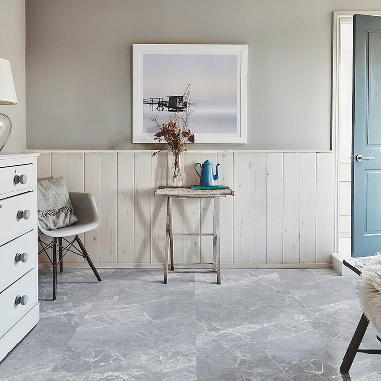 Allow our Monza tile to ground your home, this tile has warm grey tones and striking, white veins, exactly as you would find in real marble. Easy to install and a dream to care for.