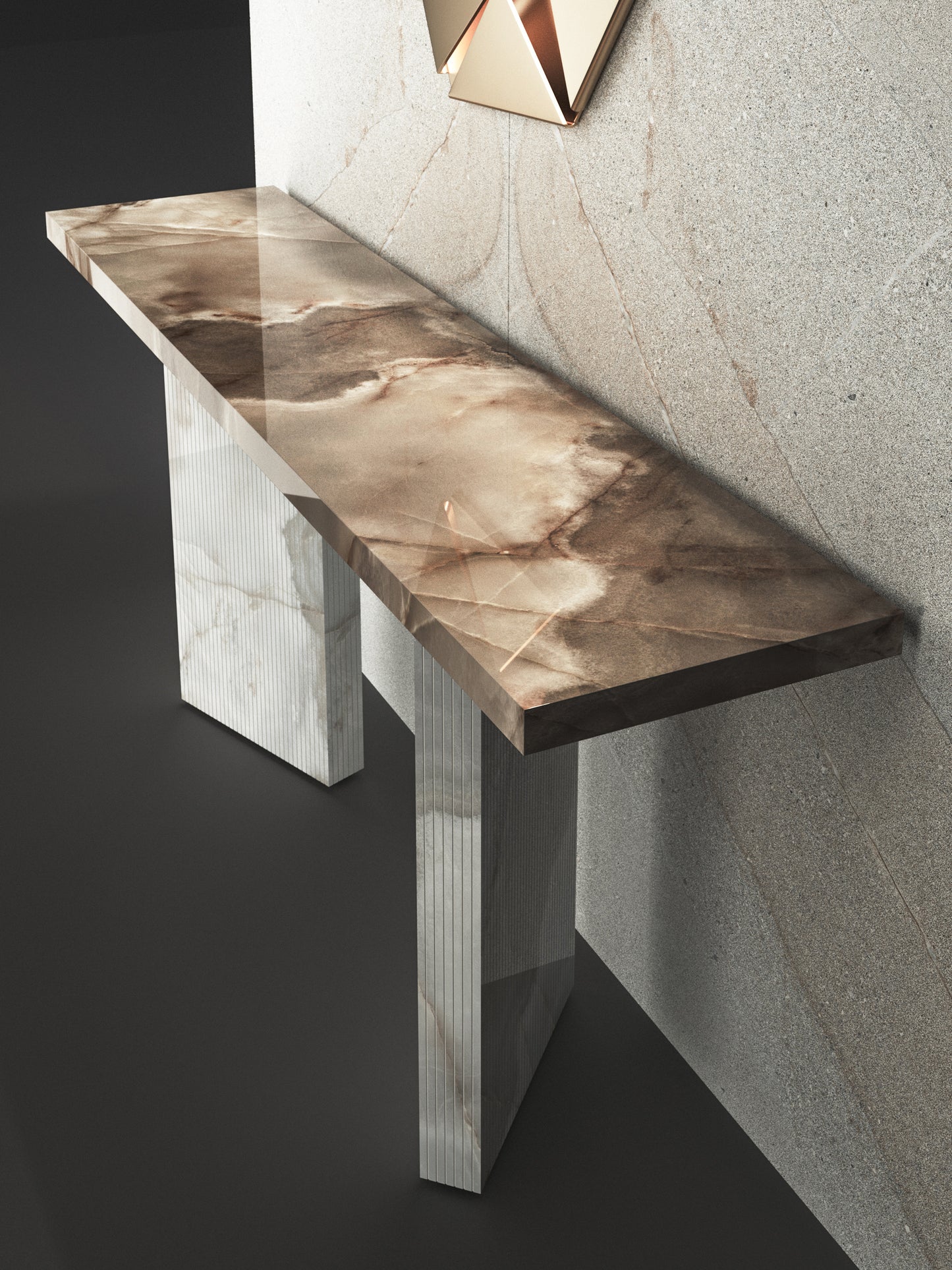 Onici Reve Choco (Matte) This large format porcelain slab has a smooth matte finish that offers a natural, low-sheen texture ideal for calm interiors.