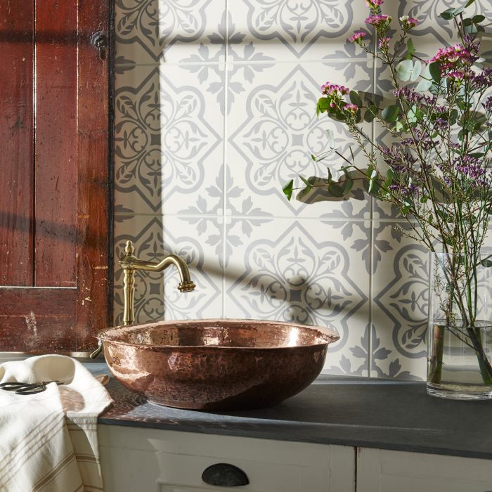 Named after a grand castle perched on the edge of the river Tamar, the lovely tracery pattern of Pentillie looks beautiful on walls as well as floors. With Original Style's Odyssey collection, we’ve taken design influences from across the ages and continents, combining them to create a beautiful range of tiles to decorate your home with. Many of Original Style's designs are based on ancient or classical patterns but all have been lovingly fashioned by hand in Original Style's Devon studio before being eternally captured on ceramic or porcelain.