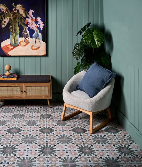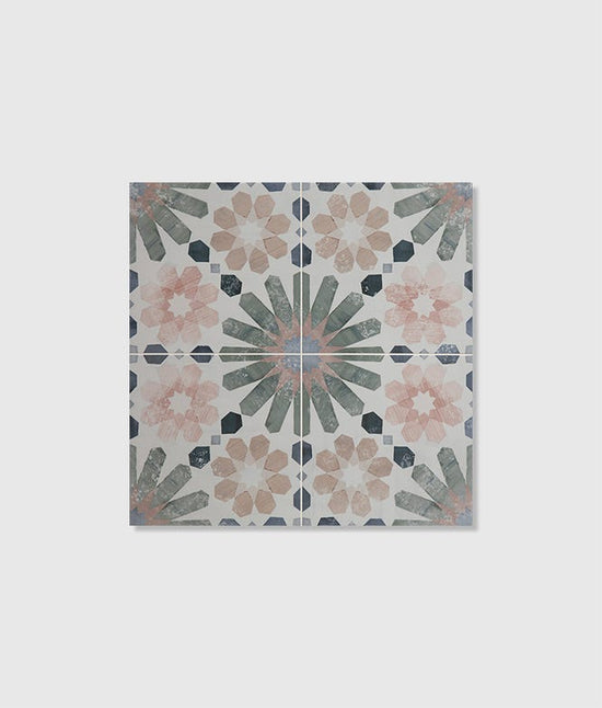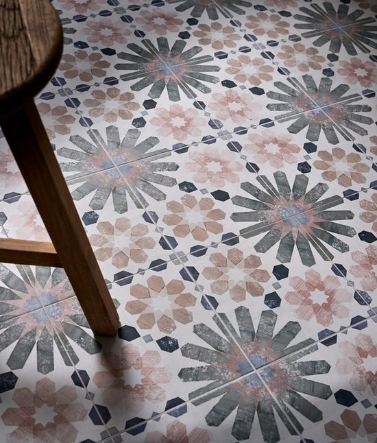Inspired by traditional Moroccan styles and updated for the modern age, this showstopper will bring gently aged-looking geometric patterns into your space. This tile comes as a larger tile with a prescored grout joint down the centre, designed to give the effect of smaller tiles in a more cost-effective way.