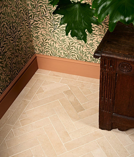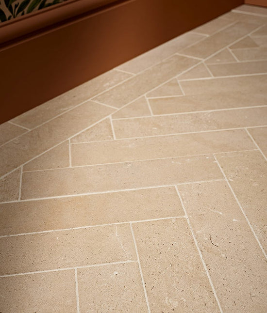 A creamy, fossil-filled Great British stone. Portland has been used to build some of the most iconic buildings across the country. These elegant Portland Parquet tiles utilise waste product thanks to their small but elegant size.