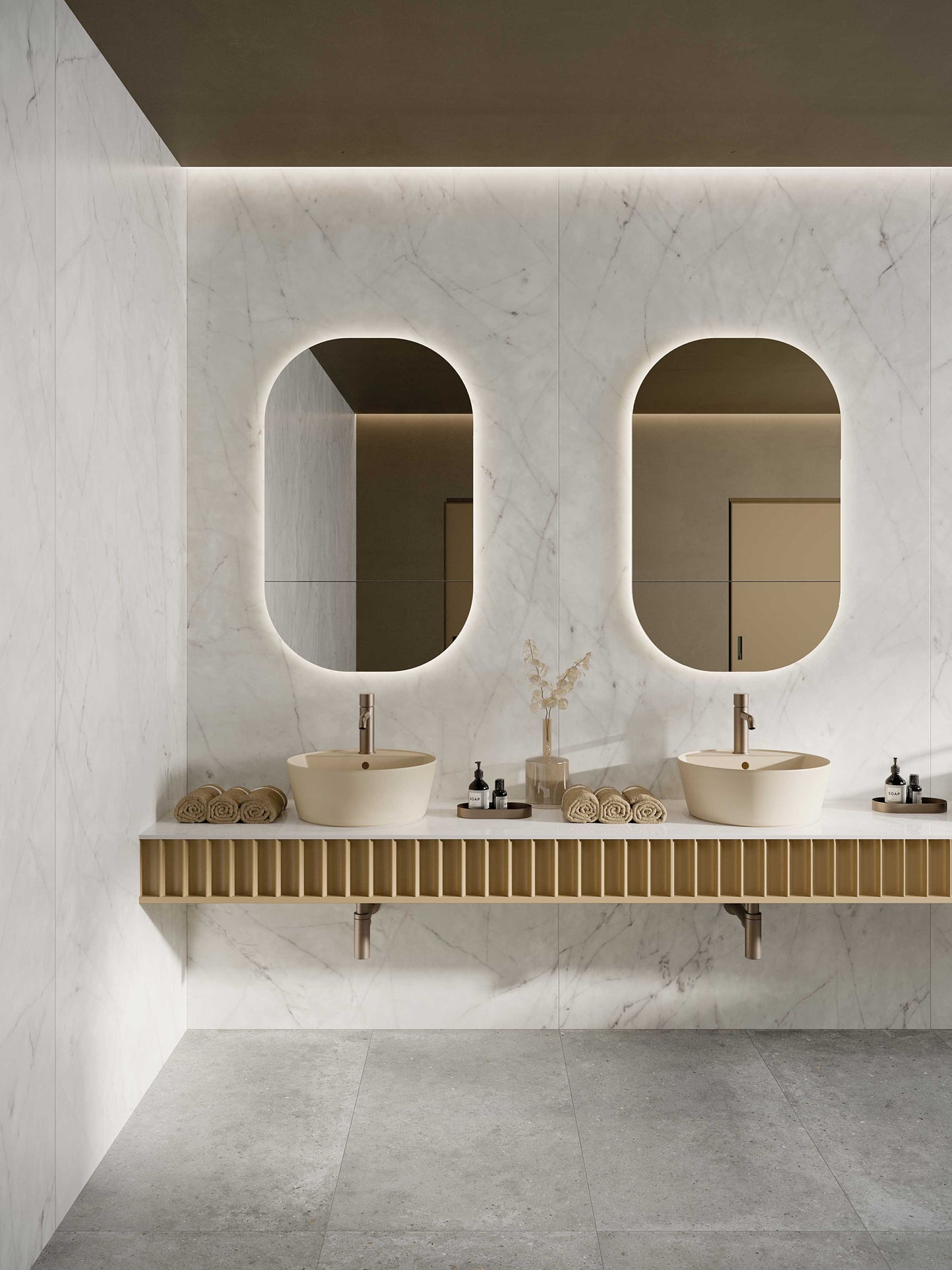 Redox is a "colourful luxury experience" that fuses metals with marbles. Redox cleverly combines a selection of polychromatic marbles, but in a completely new and contemporary way. The colour contrasts and the stylish matches are defined by a sophisticated colour palette as well as neat, geometric decorative patterns.