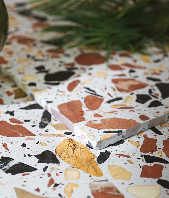 The Italian city of Venice is well known for its terrazzo filled buildings, and we took our inspiration for this range of resin-based real terrazzo tiles from landmarks and areas of the city. Rialto is made from recycled and waste marble materials, making it as sustainable as it is beautiful.