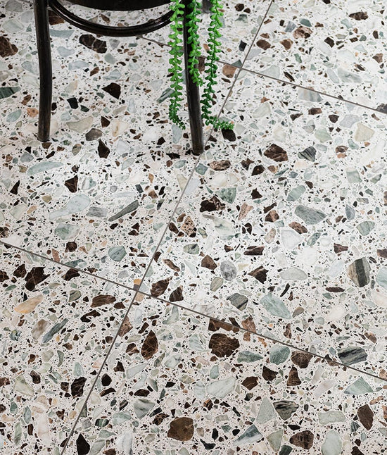 The Italian city of Venice is well known for its terrazzo filled buildings, and we took our inspiration for this range of resin-based real terrazzo tiles from landmarks and areas of the city. Rialto is made from recycled and waste marble materials, making it as sustainable as it is beautiful.