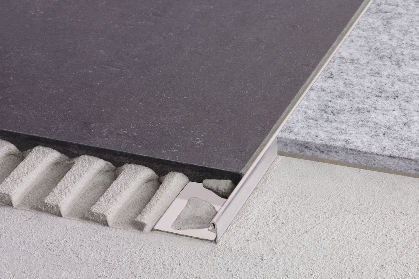Schlüter-SCHIENE is an extruded profile that finishes and protects the edges of tiled coverings in addition to other suitable surface materials.