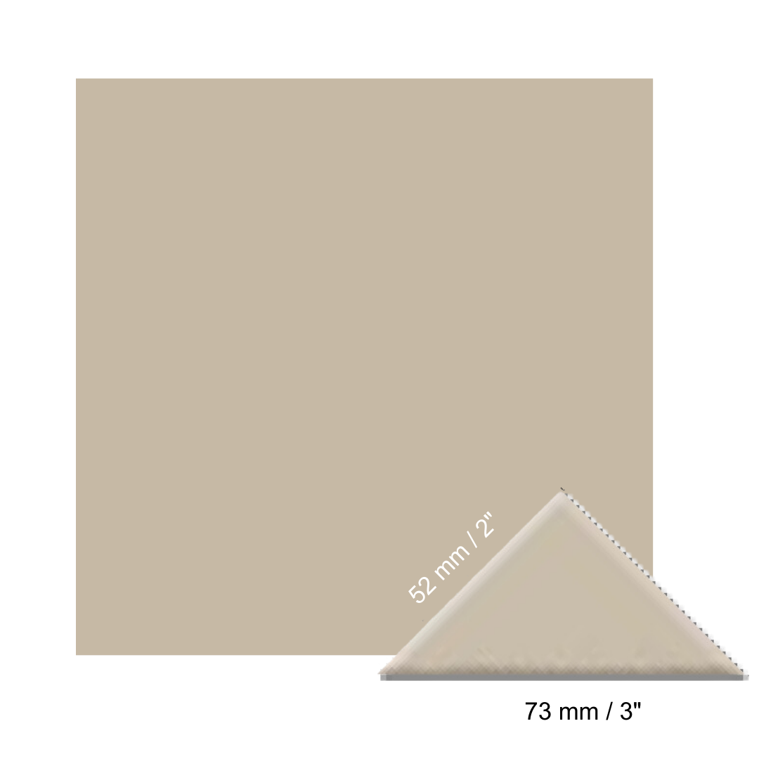 According to EU standards, a tile can bow up to 0.5% of its length. For example, on a 600mm tile, the centre could be up to 3mm higher than the corners. When tiles are laid in a brickbond format with joints aligned at the centre of the tile below, this bowing can create noticeable lipping—where one edge sits higher than the adjacent tile.