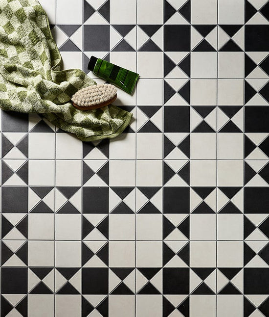 Boldly-toned patterned floors are synonymous with the Victorian era, but can be difficult and expensive to source, but our Victorian Style™ floor collection gives all the style and effect of the original mosaic style in a prescored tile format- for quick and easy Victorian perfection. This should not be used on pool surrounds and should be kept clean to maintain slip resistance. Please note that we recommend the use of Ca' Pietra's Sarsen Home Porcelain Pre-Grout Barrier with this product to avoid any grout stains on the tile surface.