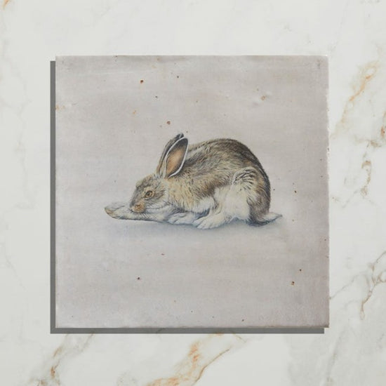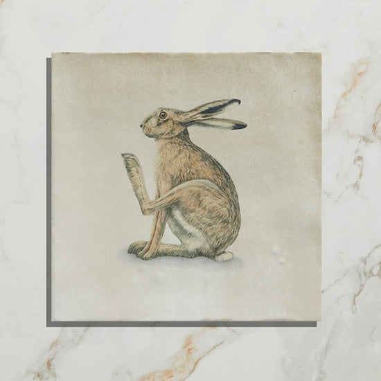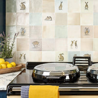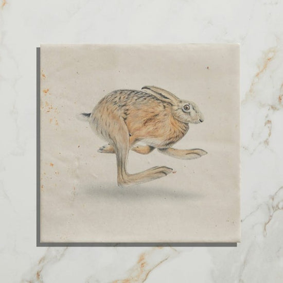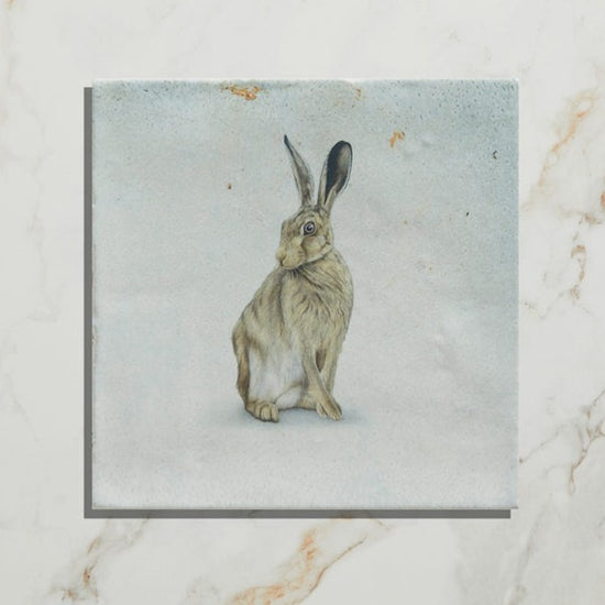 This eye catching collection designed by Wiltshire artist Joanna May features eight different miniatures of wild hares in various poses. Hand-fired in our own kiln, these tiles have a traditional yet playful farmhouse feel, and evoke an instant connection with the rolling hills and grassland of the hares natural habitat. Combine with the Nuance field tile for maximum effect.